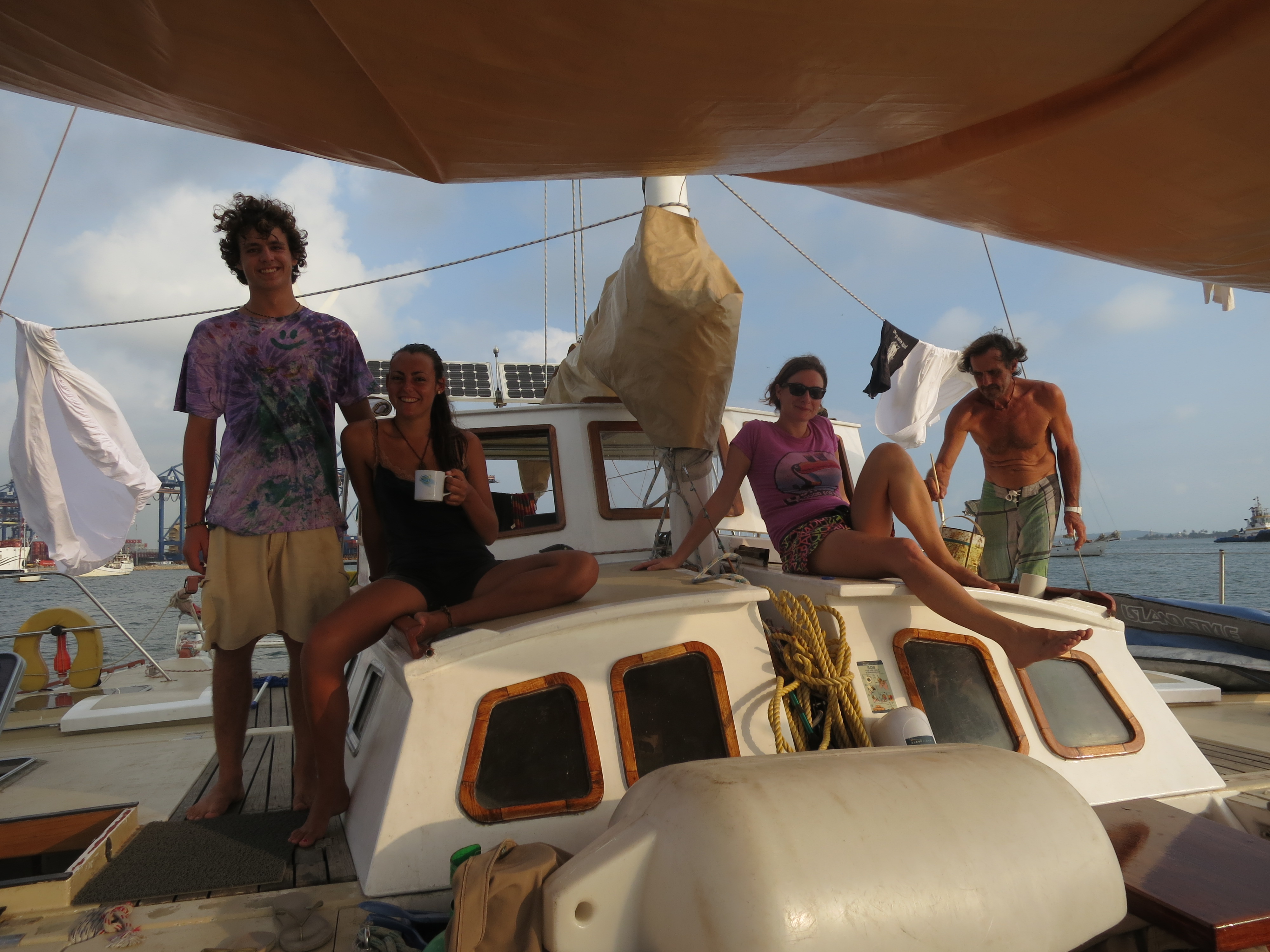 We also checked out of our hostel to embark on the Grazia, a boat that was also mostly built – as I found out yesterday – by Coen. It’s quite a beautiful boat and seems to have a nice natural feel to it I must say. The two wooden hulls are tied together with four main beams and a good portion of rope and fancy knots to keep it all together. The sun catchers on the front and back of the boat (trampolines) are awesome for chilling out on and they have small holes that keep you nice and cool.
